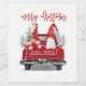 Ces mignons étiquettes de bouteilles de vin de vacances mettent en vedette un couple de gnome vêtu de casquettes de couloir rouge clair assis à l'arrière d'un camion rouge vintage. Ci-dessus dans le script de fausse parties scintillant moderne il dit "Joyeux Noël". Personnalisez avec les noms et l'année à l'arrière du camion. Conçu par Susan Coffey.