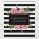 Elégant mariage étiquettes de vin pleine taille, fait dans un motif de bande horizontale noir et blanc, avec des graphiques de belles fleurs de pivoine rose. Une zone de texte rectangle noir, au milieu du étiquette, a un texte blanc personnalisé. Personnalisez le texte pour lire ce que vous voulez, sac cadeau vin assorti est disponible.