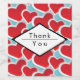 Étiquette de bouteille avec un motif extensible de 2 coeurs rouges gras différents de taille chaque coeur entouré d'une bordure extérieure blanche. Un cadre en forme de losange superposé avec votre texte de remerciement à l'intérieur.