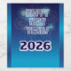 A vibrant New Year celebration scene unfolds with a dynamic bold text 'HAPPY NEW YEAR!' as colorful fireworks burst in the background. The fireworks illuminate the night sky with sparkling lights, creating a festive atmosphere. The year '2026' in large, playful font, surrounded by a gradient of blue hues. The lighting is bright and celebratory, enhancing the joyous mood of the scene.