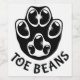 Une patte noire avec des haricots noirs comme orteils, avec le texte "Fèves d'orteil", sous la patte.