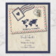 International Adventure Rustic Destination Wedding collection Ce design capture l'esprit de la déambulation et de l'amour, mêlant esthétique de voyage vintage et charme rustique. Avec ses rayures aériennes classiques en rouge et bleu, ses tons beiges muets et ses subtiles textures cartographiques, il évoque l'impression de partir en voyage romantique. Des éléments comme les timbres-poste, les détails de la carte du monde et le style rétro en font un lieu idéal pour les couples qui rêvent d'une célébration mondiale remplie d'aventure, de connexion et d'élégance intemporelle. Cette conception fait partie d'une collection de mariages personnalisables correspondante. Je peux gagner une petite commission grâce à des achats effectués via des liens de référence sur les médias sociaux.