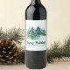Cette belle étiquette de vin de fête de fin d'année d'entreprise personnalisée présente de beaux sapins de Noël verts dans un paysage hivernal au-dessus du nom de votre entreprise personnalisé et Joyeuses Fêtes. Décoration de Noël personnalisée pour une entreprise ou une famille.
