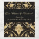 Élégant et chic, étiquette de vin de mariage aux feuilles d'acanthe grecques noires et dorées. Personnalisez avec vos noms et date.