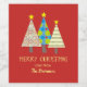 Simple, moderne, rouge Joyeux étiquette de Noël pour cadeaux de famille et d'amis, avec pins colorés et calligraphie tendance.