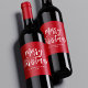 Étiquettes de vin de vacances festifs avec "Joyeux Noël" affiché en lettres de brush blanc avec un arrière - plan rouge. Personnalisez les étiquettes de vin de Noël Joyeux avec votre nom de famille et l'année affichée en lettres blanches.