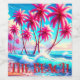 Ce étiquette de vin dit "The Beach" sur lui avec une scène de palmiers et l'océan représenté dessus.