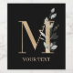 Lettre M monogramme floral. Lettre M en texture brun doré accentué de feuilles composés d'aquarelle verte, fleurs de fleurs et poussière d'or. Personnalisez avec le nom dans la police correspondante.