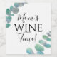 Ces étiquettes de bouteille de vin amusantes sont décorées de feuilles d'eucalyptus à l'aquarelle et des mots "C'est l'heure du vin de maman !"