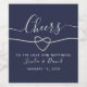 Écriture calligraphie manuscrite, moderne, minimaliste, élégante, simple, étiquette de vin mariage bleu marine avec coeur de corde argentée. Salutations à l'Amour et au Bonheur.