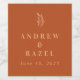 Simple moderne Elegant Boho Mariage vin étiquette en arrière - plan orange brûlé et un dessin minimaliste feuille.