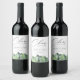 Rustique chic aquarelle bois forêt et scène de montagne, étiquettes de vin personnalisés. Elégante calligraphie "Cheers" graphique avec modèle de style design moderne fournit des lignes pour les noms, la date de l'événement et la phrase.