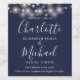 Doté de jolies lampes à cordes et de noms chic de style signature, cet élégant étiquette de vin bleu marine mariage peut être personnalisé avec vos informations en lettrage élégant. Conçu par Thisisnotme©