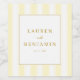 Ces élégantes étiquettes de vin pour mariage présentent un design minimaliste avec un carré blanc central bordé de lignes dorées, sur fond de rayures jaunes et crème verticales. La palette de couleurs comprend des jaunes doux, des crèmes et des ors, créant une tonalité chaude et accueillante parfaite pour célébrer les moments spéciaux. Avec un texte de remplacement personnalisable dans des polices serif classiques, ces étiquettes offrent une touche sophistiquée à toute célébration de mariage, en mettant l'accent sur la simplicité et en se concentrant sur les détails essentiels. Idéales pour ajouter une touche personnelle et luxueuse à votre événement, ces étiquettes sont conçues pour faire ressortir votre mariage.