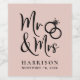 Donnez un toast mariage et peut-être à vos invités mariages un souvenir souvenir amusant de votre journée spéciale avec du vin étiqueté avec ces étiquettes de bouteille de vin rose roux personnalisés avec "Mr & Mrs" écrit dans un grand script et une illustration de deux anneaux mariages réunis. Ajoutez votre nom et votre date de mariage.