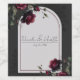 Étiquette de Mariage Fleurie Gris Ombreux Roses Rouges Bordeaux. Personnalisez cette étiquette de vin pour votre mariage ou événement.
