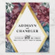 Immergez votre mariage dans une sophistication intemporelle grâce à notre collection "Enchanted Elegance". Ce design exquis présente une aquarelle peinte de bleu marine luxuriant et de riches pivoines bordeaux, capturant le romantisme et la grâce de votre journée spéciale. Au coeur du design, une forme centrale en diamant, dessinée dans une feuille d'or imitation, ajoute une touche de charme opulente, complétant parfaitement l'art floral. Disponible dans toute une gamme de papeterie mariage, de matériel de fête et de décoration, cette collection transforme chaque détail en un reflet de votre histoire d'amour et de célébration.