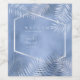 Une palette de couleurs tendance dans les tons gris acier au bleu windsor, des cadres géométriques étincelants et d'élégantes mises en scène de design, constituent la base de cette suite mariage passionnante. Que vous planifiez un mariage de destination ou que vous séjourniez à proximité de chez vous, cet ensemble délicat en feuille de palme fait un choix attrayant. Le étiquette de coordination du vin présenté ici fournit un modèle pour ajouter facilement un message "bienvenue", vos noms et la date mariage. Recherchez ID956 pour voir d'autres pièces et choix de couleurs pour cet ensemble.