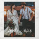 Joli étiquette de vin mariage avec photo de couple et leurs noms en police manuscrite. Il peut être facilement personnalisé en ajoutant votre photo, vos noms et la date mariage.