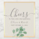 Elégant étiquette de vin avec aquarelle verte, faux accent or, et calligraphie moderne avec un message "Cheers". Idéal pour les réceptions de mariage, les dîners de répétition ou les bouteilles de faveur. Une façon élégante de personnaliser votre vin avec une touche botanique rustique.