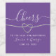 Célébrez dans le style avec cet élégant étiquette à vin mariage violet, qui comprend un coeur romantique en corde argentée, une calligraphie moderne et un arrière - plan violet audacieux. Parfait pour personnaliser les bouteilles de vin à la réception ou donner un souvenir inoubliable aux clients.