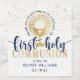 Moderne, élégante Première Sainte Communion merci étiquettes bouteille. Le design comporte l'icône en forme de chalice doré, le script de typographie "Première Sainte Communion", confetti d'or. Personnalisez avec un nom, une date et un message de remerciement.