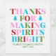 Ajoutez une touche festive à vos cadeaux de fête avec notre étiquette de vin Bachelorette Thanks for Making Spirits Bright ! Conçue dans des tons joyeux de vert, rouge, rose et bleu pour correspondre à votre décoration de fête, cette étiquette est le moyen idéal de remercier vos invités d'avoir célébré avec style. Il suffit de décoller, coller et faire sauter le bouchon ! Ces étiquettes de vin font partie d'une collection de douches de nuptiale avec des articles coordonnés disponibles. Nous vous encourageons à explorer l'ensemble pour créer une fête parfaitement assortie.