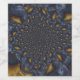 Métal liquide bleu nuit or et argent, motif abstrait fondu.