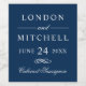 Conception d'étiquette de vin de mariage bleu marine formel avec une belle typographie qui combine un script de calligraphie fleurie traditionnel avec des lettres majuscules classiques. Le texte du monogramme personnalisé peut être personnalisé avec les noms des mariés, la date du mariage et le type de vin. Comprend un accent de défilement décoratif. Veuillez consulter notre collection de mariage élégant classique bleu marine et blanc pour des conceptions coordonnées.