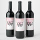 Étiquette Pour Bouteilles De Vin Monogramme en marbre rose | Parties scintillant d'