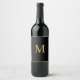 Étiquette Pour Bouteilles De Vin Monogramme Initial Personnalisé Élégant Or Noir