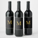 Étiquette Pour Bouteilles De Vin Monogramme Initiale Nom Personnalisé Or Noir Éléga