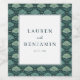 Ces élégantes étiquettes de vin de mariage présentent un thème botanique sophistiqué avec un fond vert foncé orné de motifs de feuilles stylisés dans un motif de grille. Le carré blanc central, encadré par un mince filet noir, met en valeur une typographie serif classique pour les noms et la date, créant un look raffiné et harmonieux. Parfaites pour célébrer votre jour spécial, ces étiquettes transmettent une atmosphère de tranquillité et de renouveau, ce qui en fait un choix idéal pour les couples qui souhaitent ajouter une touche d'élégance inspirée de la nature à leurs cadeaux de mariage.