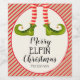 Des jambes elfes amusantes portant des collants rayés rouge et ivoire et des bottes vertes avec des cloches de jingle, et votre accueil de Noël de vacances en lettres chic, personnalisez ces étiquettes de bouteilles de vin pour servir à votre fête de vacances ou pour donner comme cadeaux ou faveurs de fête pour les cadeaux d'affaires, cadeaux d'entreprise, CHANGER LE MOT "Joyeux Noël Elfin" à tout! CORRESPONDRE des articles dans notre magasin.