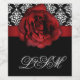 Damask Noël Premier Mariage monogramme vin étiquettes autocollants avec jolie rose rouge.
