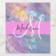 Nom monogramme irisé holographique rose, pêche et aqua, et étiquette initial de bouteille de vin. Votre nom personnalisé et votre monogramme sont écrits dans un élégant script écrit à la main avec un arrière - plan rose. Un cadeau d'anniversaire ou de Noël parfait !