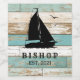 Cette conception a été numériquement. Ce design a un look rustique et océanique avec du texte personnalisable.