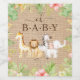 Design adorable avec la plus douce girafe, singe, zèbre, éléphant & lion avec un cadre feuillu de jungle dressé sur un arrière - plan de burlap tan rustique. Visitez notre boutique pour voir toute notre collection Oh Baby Safari
