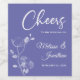 Étiquettes de vin élégantes et personnalisables pour votre réception de mariage, avec un beau dessin de fines orchidées blanches sur un côté, sur un fond romantique contemporain de couleur pourvenche violet, et le texte "À la santé du mariage de" en police blanche. Modifiez facilement les champs du modèle pour ajouter les noms des mariés dans une police script blanche élégante, et la date de votre mariage dans une police moderne en majuscules.