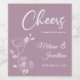 Étiquettes de vin personnalisables élégantes pour votre réception de mariage, avec un dessin au trait délicat de fleurs d'orchidées blanches sur un côté, sur un fond romantique violet poussiéreux, et le texte "À la santé des mariés" en police blanche. Modifiez facilement les champs du modèle pour ajouter les noms des mariés et de la mariée dans une police script blanche élégante, ainsi que la date de votre mariage dans une police moderne en majuscules.