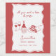 Un design unique, dessiné à la main, présentant des illustrations de vin et de pizza italiens traditionnels. Un magnifique design de fête de fiançailles rouge et blanc avec un thème de pizza et de vin italiens. Personnalisez ce design de fête de fiançailles sur le thème de la pizza et du vin et faites-en votre propre !