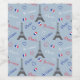 Seamless Paris text illustration with Eiffel Tower, tricolor heart shapes and French flag decoration on blue background for Valentine's Day