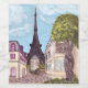 Cette peinture paysage est l'art de Kristie Hubler, inspiré par la Tour Eiffel, Paris, France, et les façades des boutiques d'intérieur de Paris Las Vegas, selon la technique de l'impressionnisme, avec la tour ronde et le toit du Mansard sur le côté gauche, et le côté droit avec le chêne français tordu sur la droite
