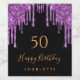 Pour une fête d'anniversaire de 50ème anniversaire (ou de n'importe quel âge). Un arrière - plan noir chic avec des gouttes de parties scintillant violet tendance, la peinture goutte à goutte. Personnalisez et ajoutez un nom et 50 ans. Avec le texte : Joyeux Anniversaire écrit avec un script de style à la main moderne. Lettres d'or.