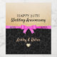 Elégante parties scintillant dorée et damas floral noir avec ruban rose et coeur doré. 50e anniversaire du mariage