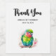 Merci d'anniversaire ou d'autres étiquettes de bouteille d'événement avec une jolie illustration de perroquet. Un petit perroquet vert aux couleurs bleu et jaune se mélangeant. Le cou a une teinte vif de rose rougeâtre.