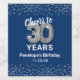 Étiquettes personnalisés de bouteille de vin de 30e anniversaire avec un arrière - plan bleu élégant qui peut être changé à n'importe quelle couleur, parties scintillant brillante argent, trente ballons d'hélium argent et un modèle texte simple qui est facile à personnaliser.