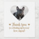 Célébrez votre journée spéciale avec ces mignons étiquettes de vin mariage chien sur mesure. Personnalisez simplement avec le nom de votre chien et sa photo. Cette conception élégante comprend une police de caractères couleur or qui dit "Merci pour célébrer mes humains! amour, ___". Ce design comprend également deux coeurs dorés et un endroit en forme de coeur où vous pouvez ajouter une photo de votre chien.