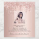 Peut être utilisé à l'avant d'une bouteille, mais est destiné à l'arrière. Pour une fête de bachelorette amusante. Personnalisez et ajoutez une photo de la future mariée. Ajoutez votre texte, des faits amusants, une biographie sur la mariée et vos noms. Un fond tendance de couleur rose gold orné de gouttes de fausses paillettes, un effet de peinture qui coule en rose et rose gold.