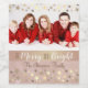 Élégant, scintillant, rose gold, étoiles brillantes avec citation inspirante : Soyez joyeux et lumineux, étiquette de vin de Noël avec photo de famille.